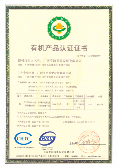 廣西芊河茶業發展有限公司是廣西梧州市集六堡茶種植生產、茶葉深加工、茶文化旅游開發于一體的重點龍頭企業,是廣西農業標準化示范區、中國茶葉學會科技示范基地、廣西梧州六堡茶研究院的六堡茶良種選育、繁育實驗基地和加工實驗基地;其種植基地及茶葉生產體系已獲得ISO22000/HACCP質量管理體系認證及有機認證,并獲得六堡茶原產地地理標志認證保護產品。是廣西民族大學芊河六堡茶文化及人才培訓基地及廣西民族大學芊河六堡茶產業研究與發展基地。